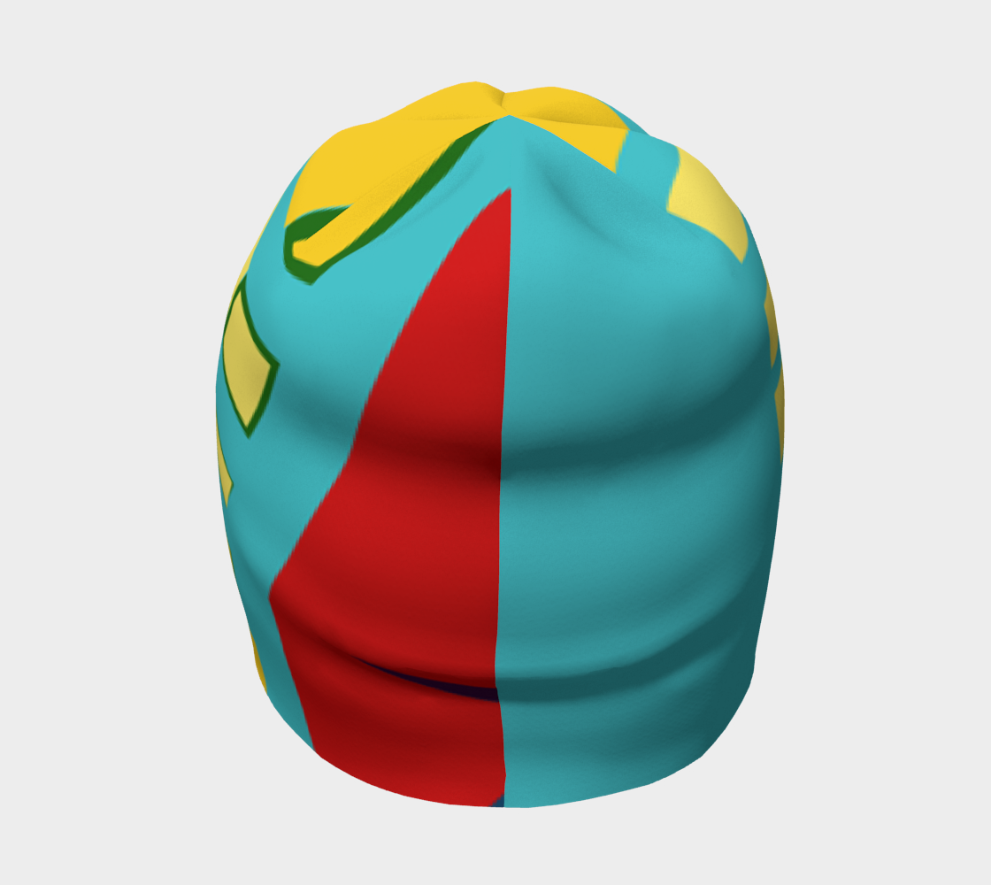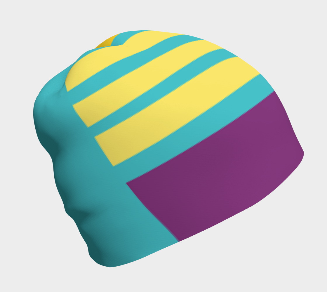 This beanie is graphic arts piece inspired from a painting by B. Younger. Bold shapes make for a fun contemporary look.