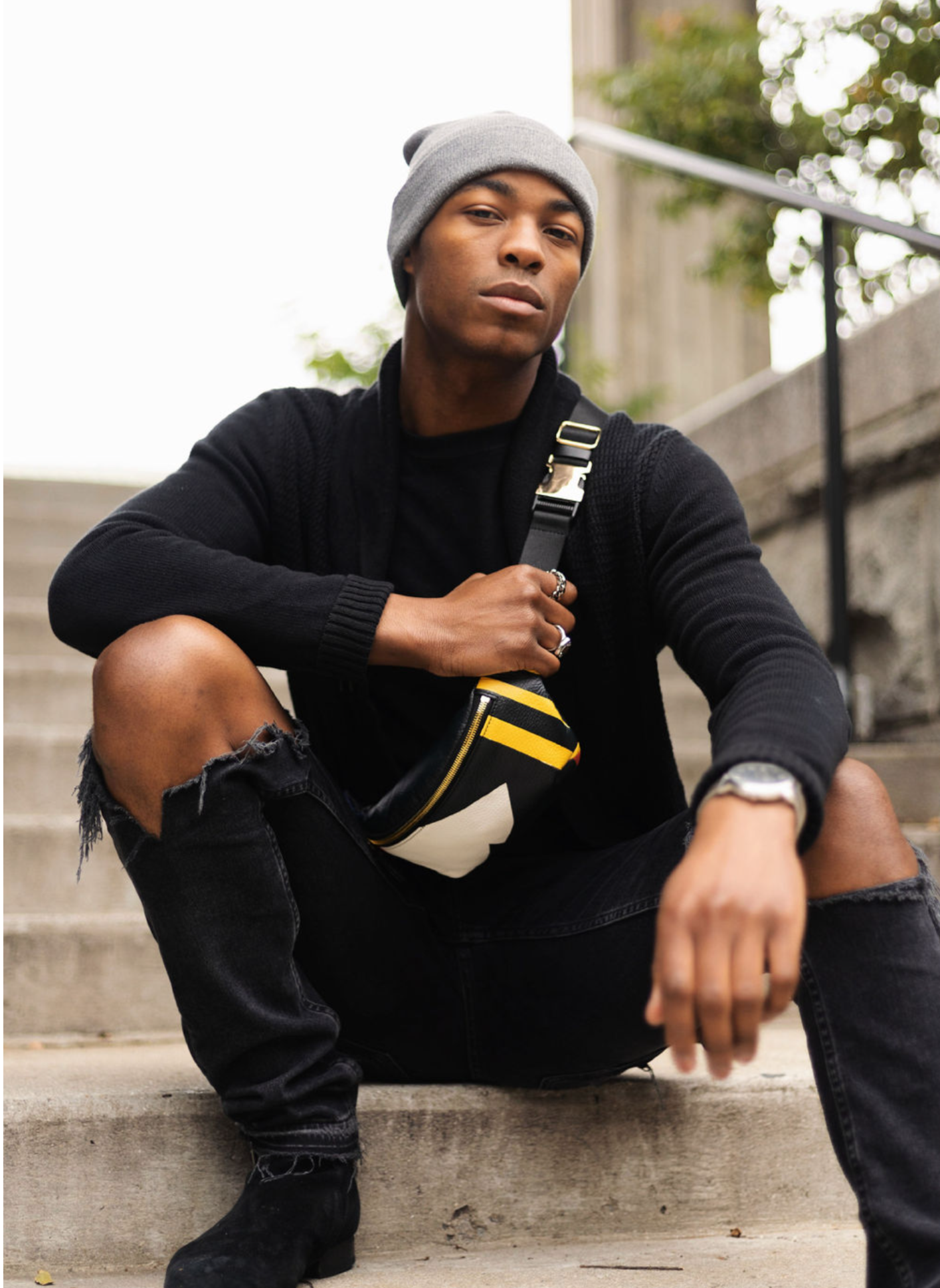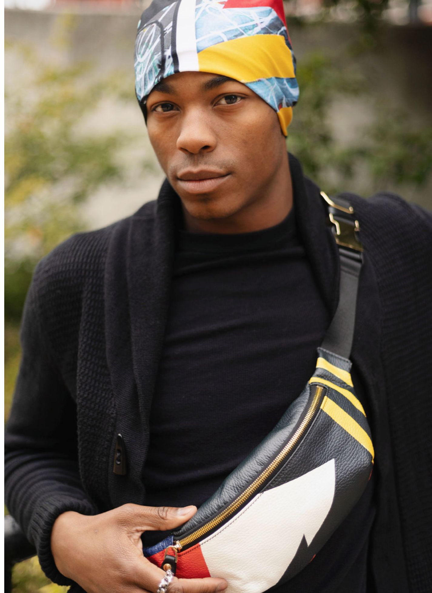 We call it the "B" Bag. Its our spin on the fanny pack. Made of 100% Nappa leather, the fanny pack is both fashionable and convenient. Handmade to order, fashionable and sustainable. This colorful textured leather is enriched with inner lining which provides softness to your belongings and the dimensions mean that this cozy bag gives enough space for all of your essentials.