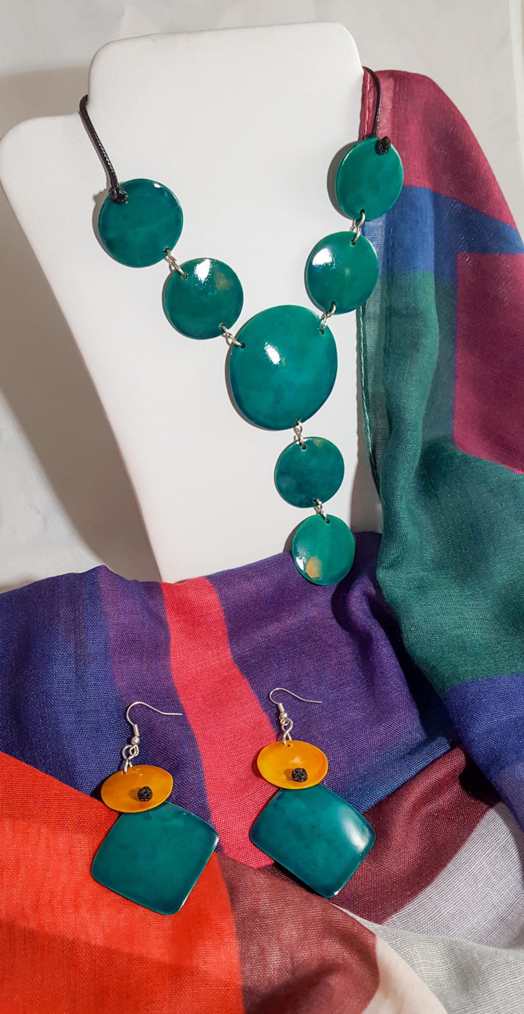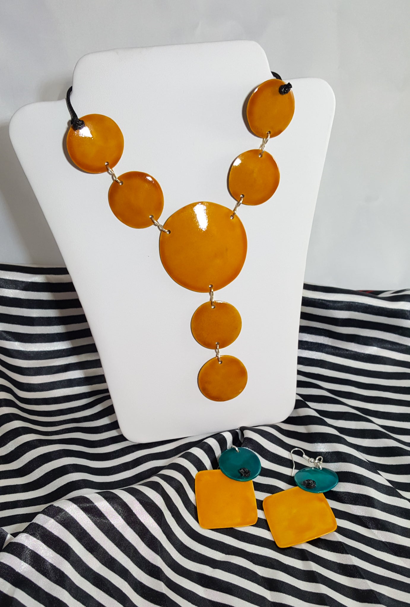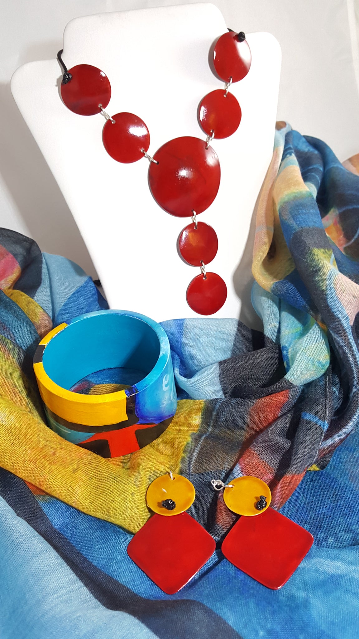 This hand-painted necklace is extendable. Wear it closer to your neck or lower. Due to the handmade quality of these items, there may be slight variations of color. All pieces are as unique as you are!