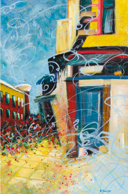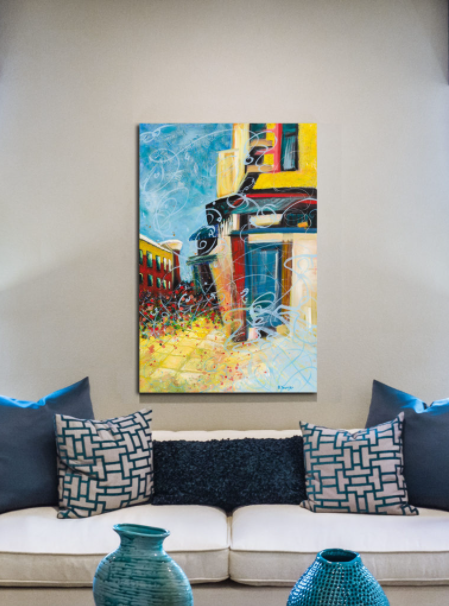 This painting is the first born of the National Harbor series. Bright colors take over the harbor at Oxen Hill, Maryland. Comprised of layers of saturated color and textures you just can’t wait to touch!